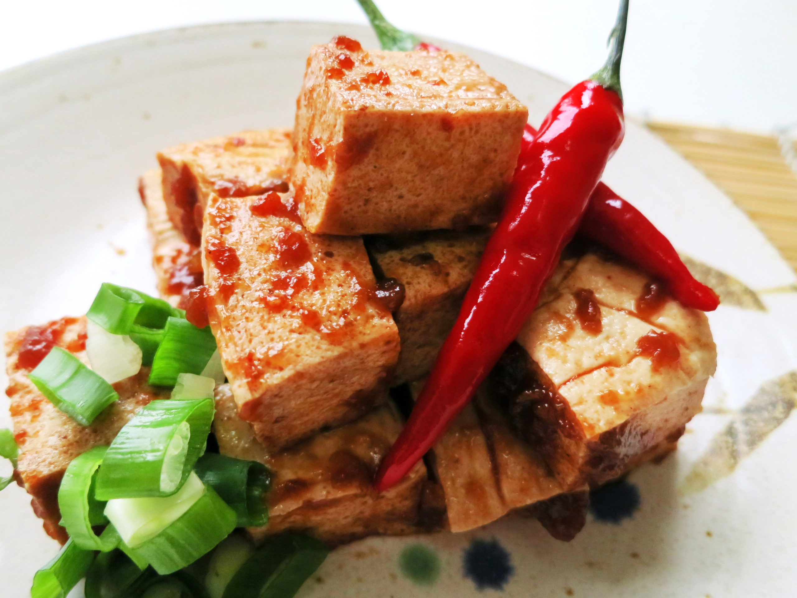 - 洗淨切塊:將特選新鮮非基改百頁豆腐洗淨後切塊狀備用